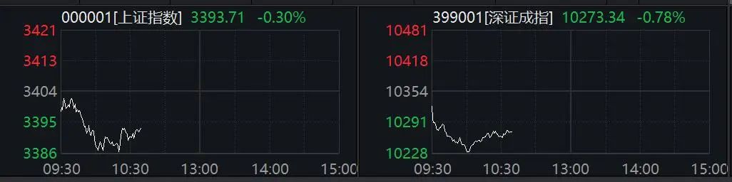 5月15日早盘,A股三大指数小幅低开。沪指跌0.16%,深证成指跌0.28%,创业板指跌0.34%。开盘后有所下行,截至发稿,创业板指跌幅收窄至1%以内。