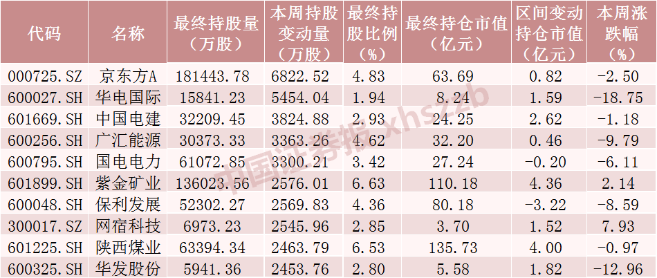 从市场表现情况看,本周北向资金持股增加数居前十的股票中,除紫金矿业、网宿科技分别上涨2.14%、7.93%外,其他股票均下跌,华电国际跌幅最大,本周下跌18.75%。
