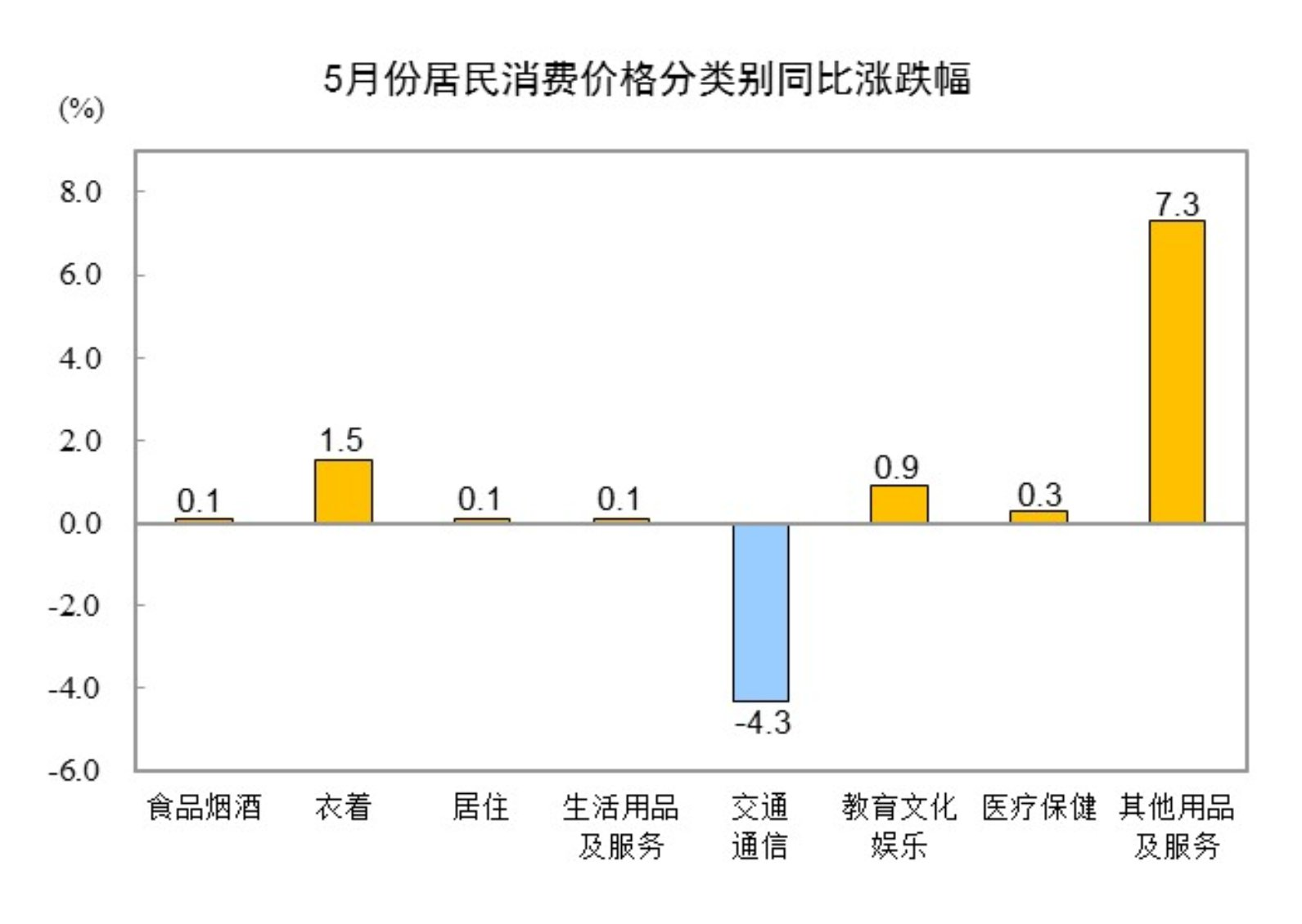 国家统计局:5月CPI同比降0.1% PPI环比降0.4%