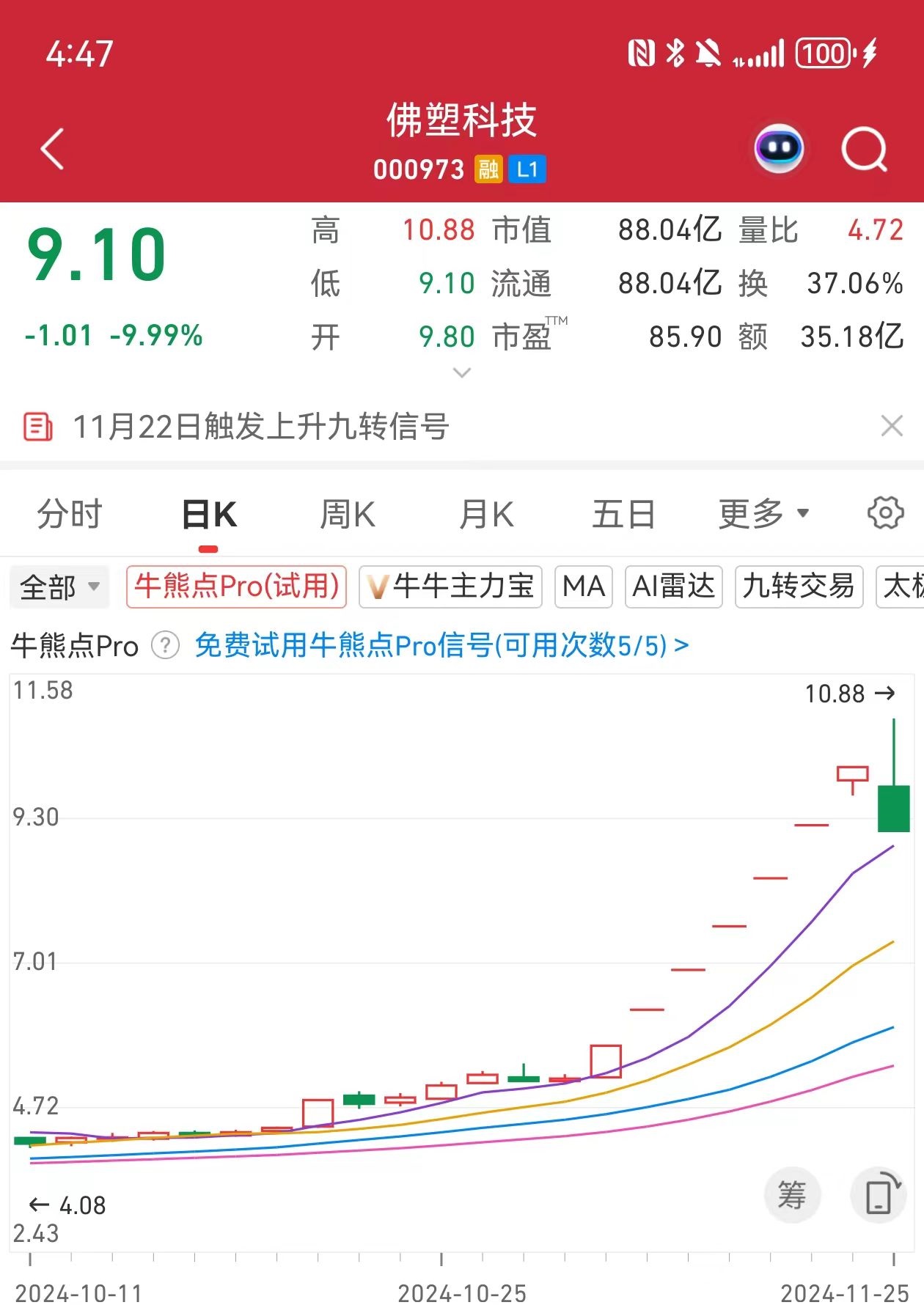 从交易额看,11月25日成交额达35.18亿元,换手率高达37.06%,成交额均创历史新高。此前一个交易日,11月22日,佛塑科技也出现天量成交,成交额高达32.79亿,换手率达33.92%。
