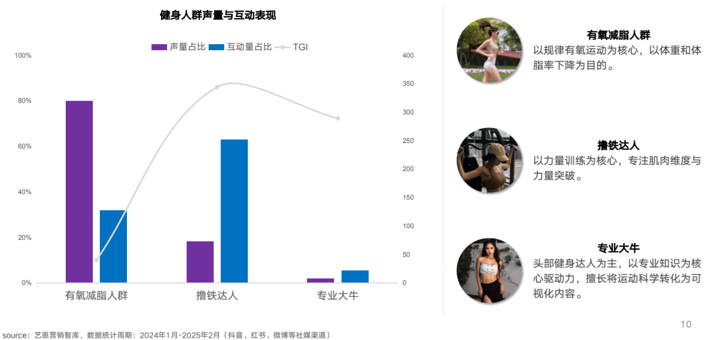 2.健身器械市场趋势:健身器械市场规模持续扩大,新客不断涌入,尤其是智能健身器械受到欢迎。健身高阶人群是市场主力,偏好贵价大器械;康乐健体人群关注康养小器械;千禧入门人群偏爱大众健身器械;实用主义人群多为有孩家庭,主要为孩子选购。