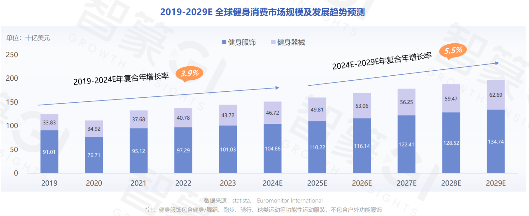 近年来,中国健身产业以年均18%的复合增长率快速发展,背后是4.2亿消费者对健康生活的重新定义。天猫作为行业数字化升级的主阵地,见证了从传统器械到智能生态、从单一消费到场景化解决方案的深刻变革。2024年全球健身消费市场规模预计达到1514亿美元,其中健身服饰和健身器械分别占1102亿美元和498亿美元。中国健身市场在政策推动和消费升级的双重作用下,迎来了黄金时代。