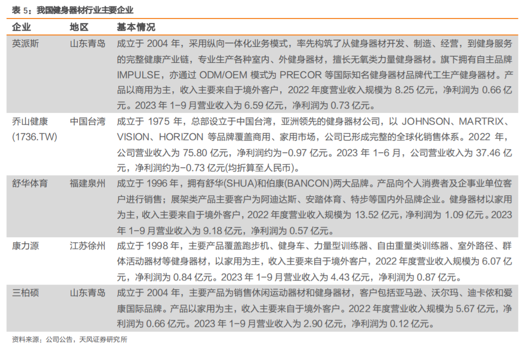 舒华体育:在国内健身器材市场知名度较高,产品涵盖家用健身器材、商用健身器材等多个领域,业务布局主要在国内。