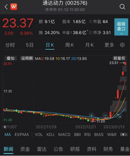 通达动力上午上涨9.36%,近7个交易日上涨94%。
