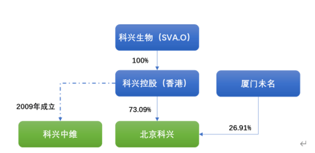 此外,在新的红筹架构下,潘爱华煞费苦心的搞了一系列资本运作。让自己的未名集团逐步减持北京科兴,让位给科兴生物。几经操作,科兴生物持有北京科兴73.09%股权,成为第一大股东,未名集团通过子公司厦门未名持有北京科兴26.91%股份。