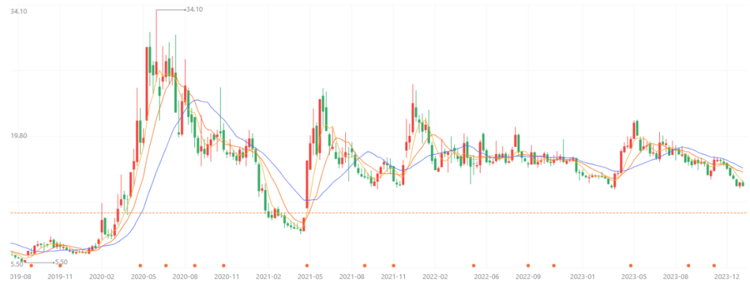 截止2023年三季度末,未名医药仍有3.2万户股民,此时公司股价已不足17元,较2020年34元的高点已经腰斩。