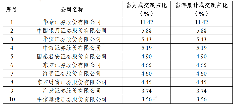 ETF成交额排名:华泰证券蝉联榜首,华宝证券跃至第三