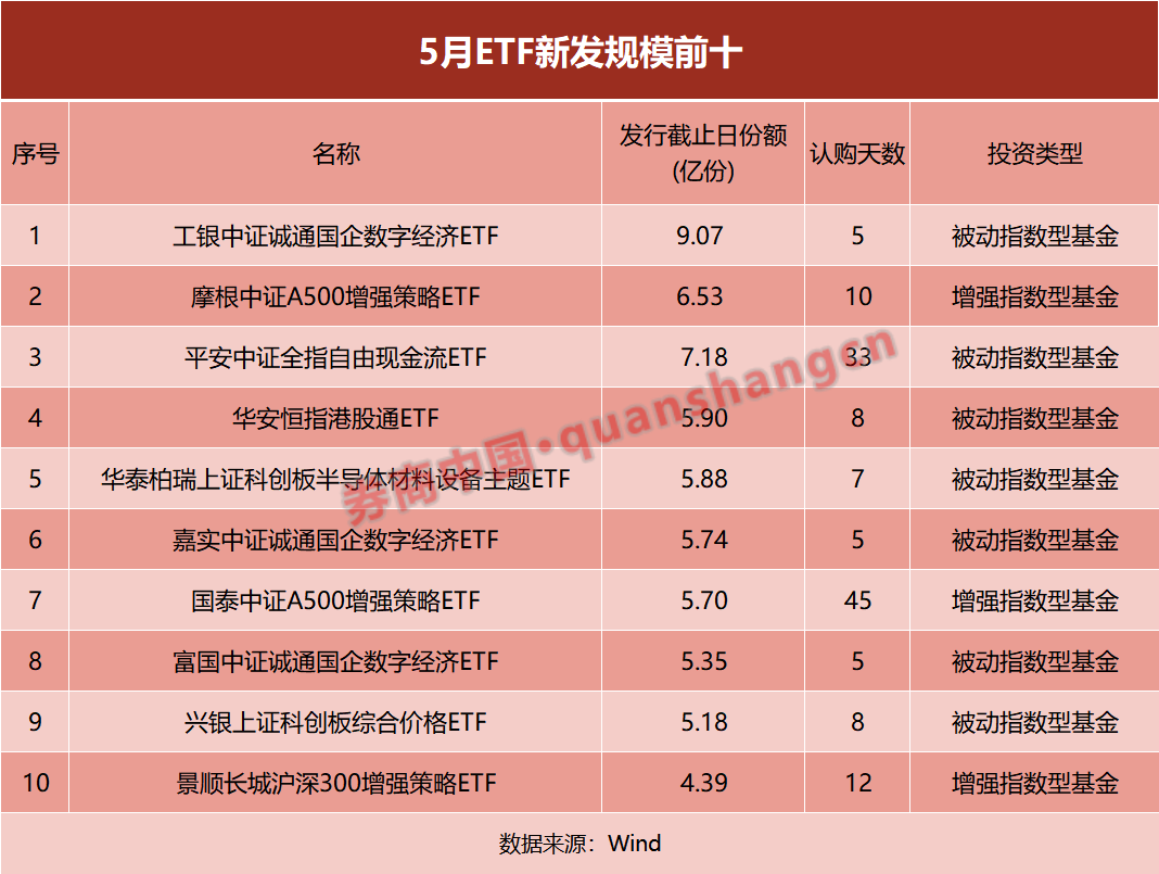 值得注意的是,2月份至5月份ETF发行规模逐月递减。