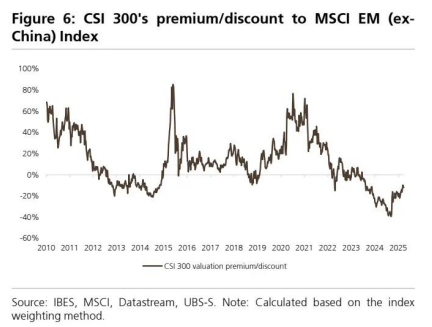 假设中美关税维持不变,瑞银预计 2025 年沪深 300 指数每股收益(EPS)同比增长 6%。