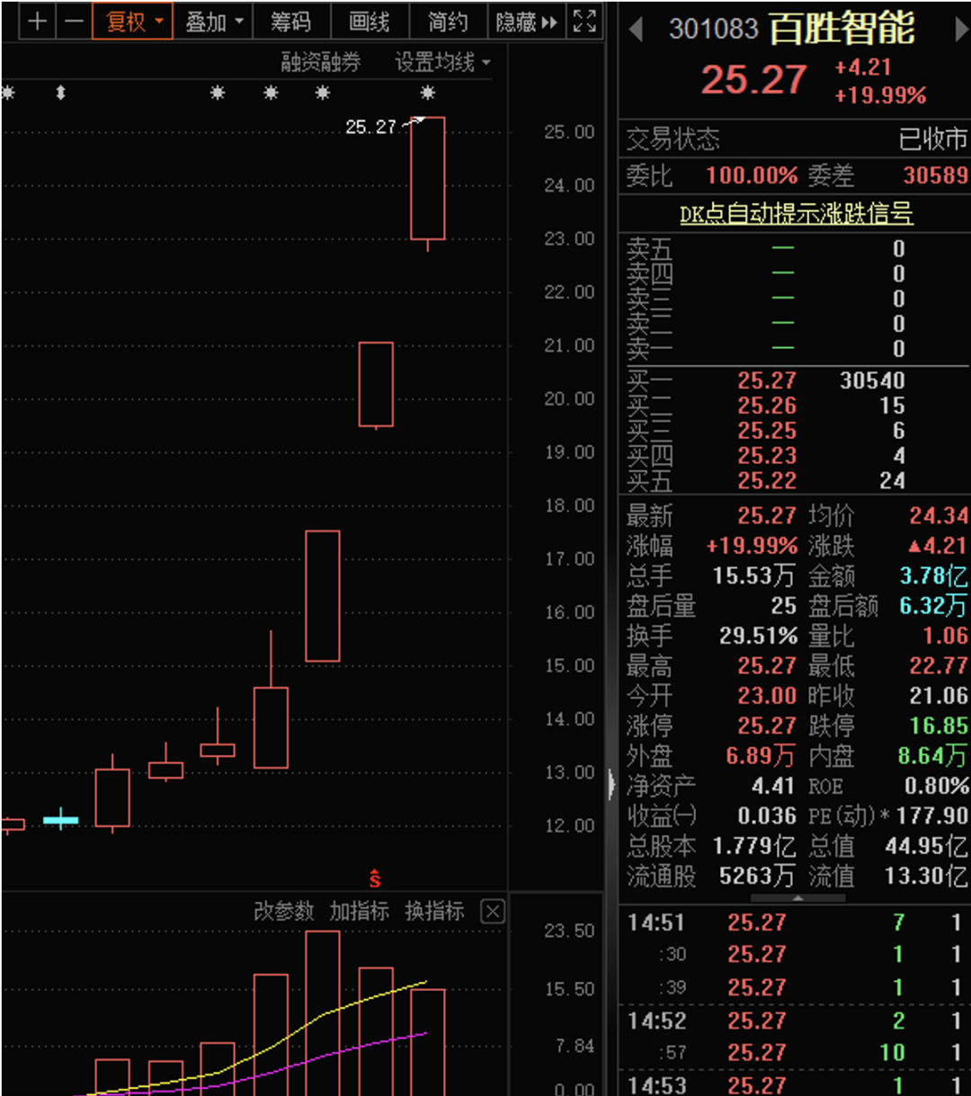 深交所披露,百胜智能在5月17日至25日涨幅严重异常期间,获自然人买入12.75亿元,占比76.27%(其中,中小投资者累计买入超8亿元,占比49.19%),机构投资者买入占比23.73%。公司回复深交所关注函中指出,目前,公司主营生产的精密减速器产品尚未应用于人型机器人领域,暂无签署合作协议。