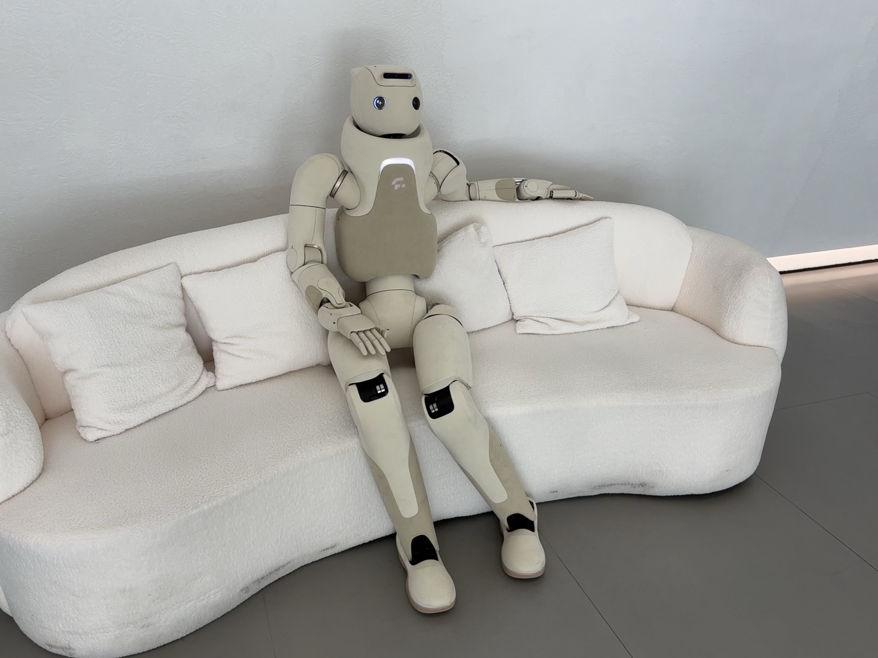 自2025年世界人工智能大会(WAIC)首次“露面”之后,第一财经记者在北京再一次见到了傅利叶发布的全尺寸人形机器人GR-3。GR-3坐在沙发上,伸直单臂,摆出“揽肩膀”的状态和观众进行合影。