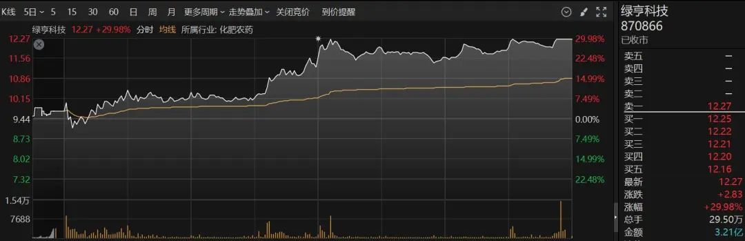 市场焦点方面,农业股继续保持强势,种业概念呈现加速上扬的走势,板块指数再度飙升逾15%,创历史单日最大涨幅,并创3年多来新高。板块内所有个股上涨,康农种业、秋乐种业、绿亨科技等多股30%涨停,神农种业、敦煌种业等也均走出连续涨停的行情。