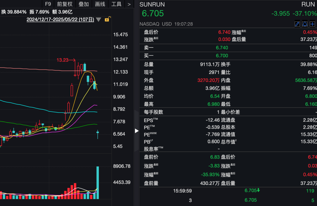值得注意的是,由于美国众议院通过的“美丽大法案”显著削减绿色能源补贴,美国屋顶太阳能公司Sunrun周四跌超37%;设备供应商SolarEdge Technologies跌24.67%,Enphase Energy跌19.63%。另外Maxeon太阳能技术跌9.42%,NextEra能源跌约6%。