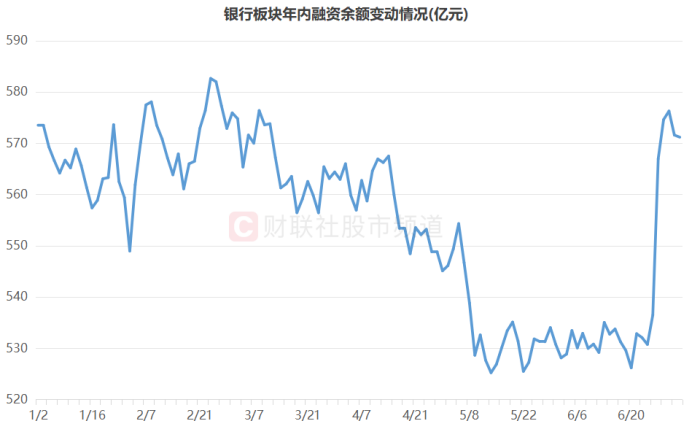 注:银行板块年内融资余额变动情况(截至7月3日数据)