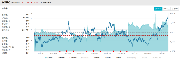 注:中证银行指数目前股息率及分位点情况(截至7月4日收盘)