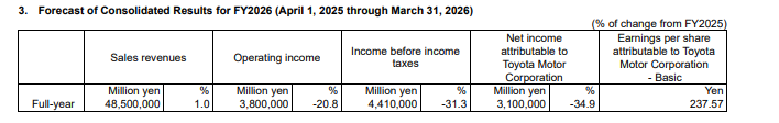 本周四,日车汽车巨头丰田汽车公司公布了2025财年财报和2026财年的财务预测。