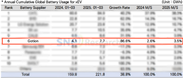 据SNE统计,在2025年一季度全球动力电池装车量Top10的企业中,国轩高科以7.7GWh的装车量排名第六,同比增长86.6%,是榜单中增速第二的企业;市场占有率达3.5%,较去年同期增加0.9个百分点。凭借客户结构持续优化及中高端车型应用开拓,公司高性能的动力电池产品在国内、国际市场出货量均实现加速增长,目前广泛应用于奇瑞、吉利、零跑、上汽通用五菱、长安、VinFast、Rivian等知名车企品牌。