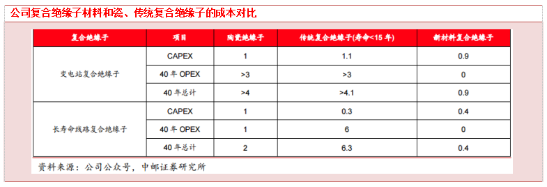 公司的变电站绝缘子在24年的应用中无一例老化寿命的质量问题,无论在变电站还是线路中,相较于陶瓷、传统复合绝缘子,40年全生命周期的经济性具有很好的优势。