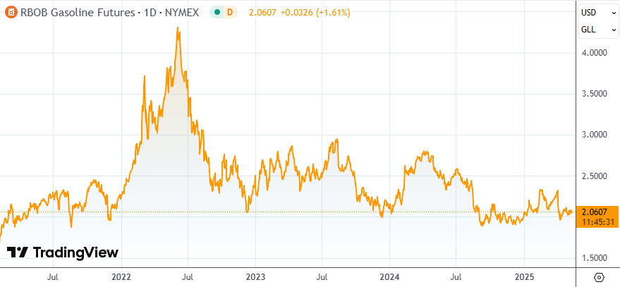媒体分析后来发现,特朗普提到的油价是RBOB汽油期货。在特朗普发布帖文的前一天,RBOB汽油期货确实触及了每加仑1.98美元,目前在2美元附近波动,周一时一度跌至约1.96美元。