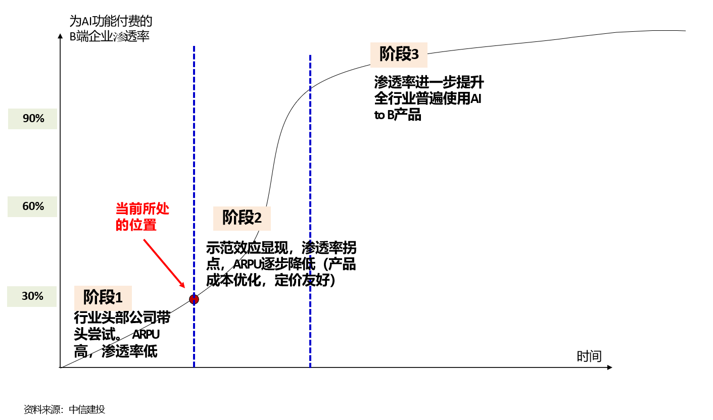 当前B端应用仍在渗透率拐点前期,后期看加速渗透。