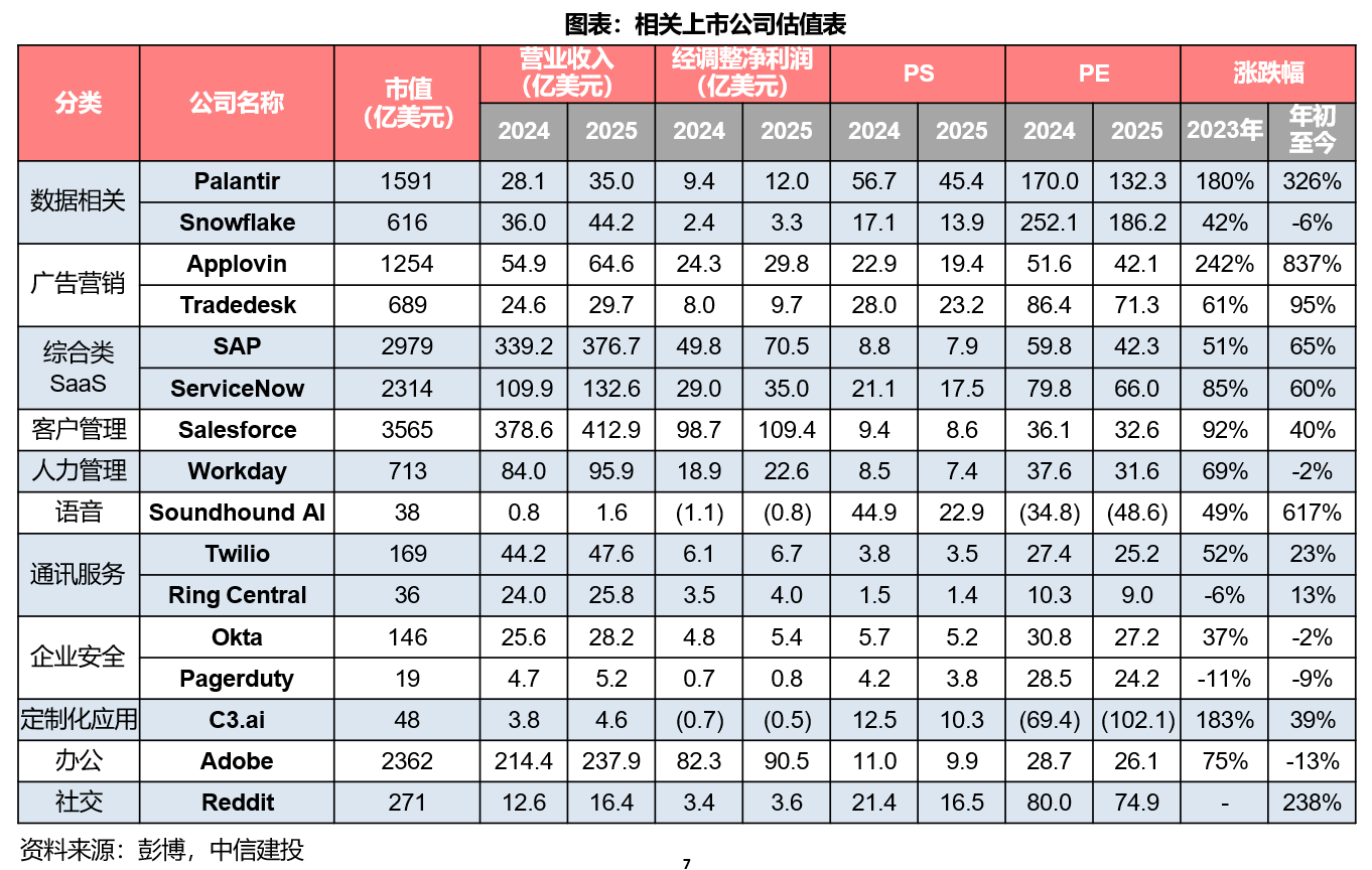 AI助手:企业所有内部管理流程与业务环节,都具备AI化的潜力,如Salesforce的客户管理助手Agentforce首周就得到200个订单,2美元/单轮对话的定价也得到普遍认可。AI也赋能SAP、ServiceNow、Workday等公司,提升企业内部的财务、人力、供应链管理等环节的效率。