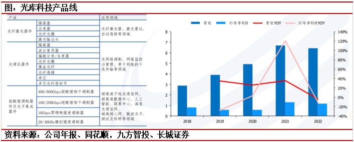 光库科技:无源器件的核心供应商,铌酸锂募投项目加速推进。公司铌酸锂调制器芯片及器件主要用于100Gbps以上的长距骨干网相干通讯和单波100/200Gbps的超高速数据中心中,公司开发的新一代薄膜铌酸锂光子集成技术,既可以用在相干传输形式,也可以用于非相干传输模式。