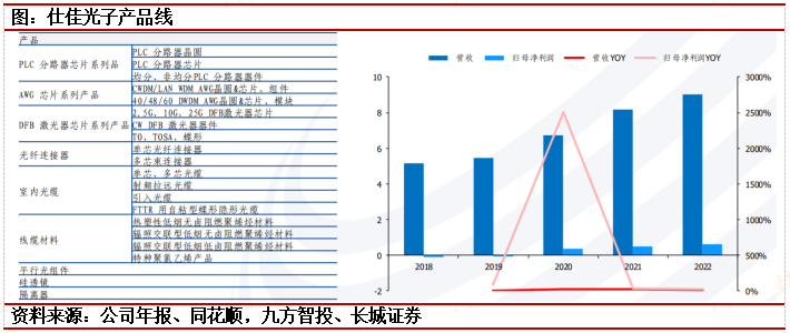 仕佳光子:在横向拓展方面,公司从单一PLC分路器芯片突破至系列无源芯片(PLC分路器芯片、AWG芯片)、有源芯片(DFB激光器芯片),并逐步开发微透镜芯片,VOA芯片,未来向有源+无源的光电集成方向演进,紧跟行业发展趋势。在纵向延伸方面,公司以晶圆、芯片为基础,通过封装工艺技术的不断提升,由芯片逐步向器件模块领域延伸。