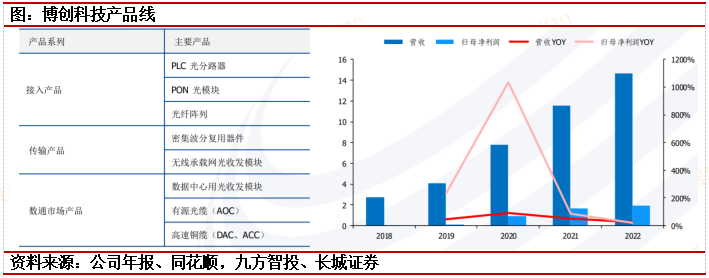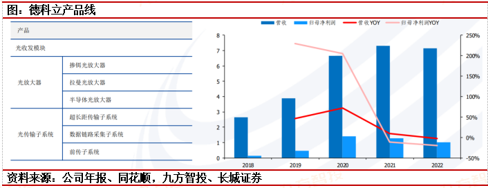德科立:国内先进光通信产品供应商,围绕“高速率、长距离”持续研发拓宽品类。公司研发完成100GBIDI、400G10km/40km非相干、100G/200G相干、ComboPONOLT等光模块产品,进一步完善宽谱光放大器系列、OXC光背板和5G半有源前传子系统、智能数据链路采集子系统等产品,加快推进O-band密波光传输平台建设,持续提升公司产品核心竞争力。