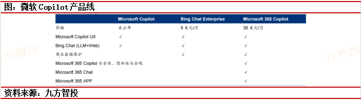 Microsoft365Copilot(30美元/月订阅服务):AI时代的企业级办公套件今年3月,微软推出了集成GPT-4的Microsoft365Copilot,支持在Word、PowerPoint、Excel、Outlook、Teams、PowerPlatform、BusinessChat中使用,提供了包括文字和图片内容生成、归纳、数据分析、辅助决策等一系列新功能。7月,微软宣布Microsoft365Copilot面向商业用户每月30美元的定价。本次变化主要包括: