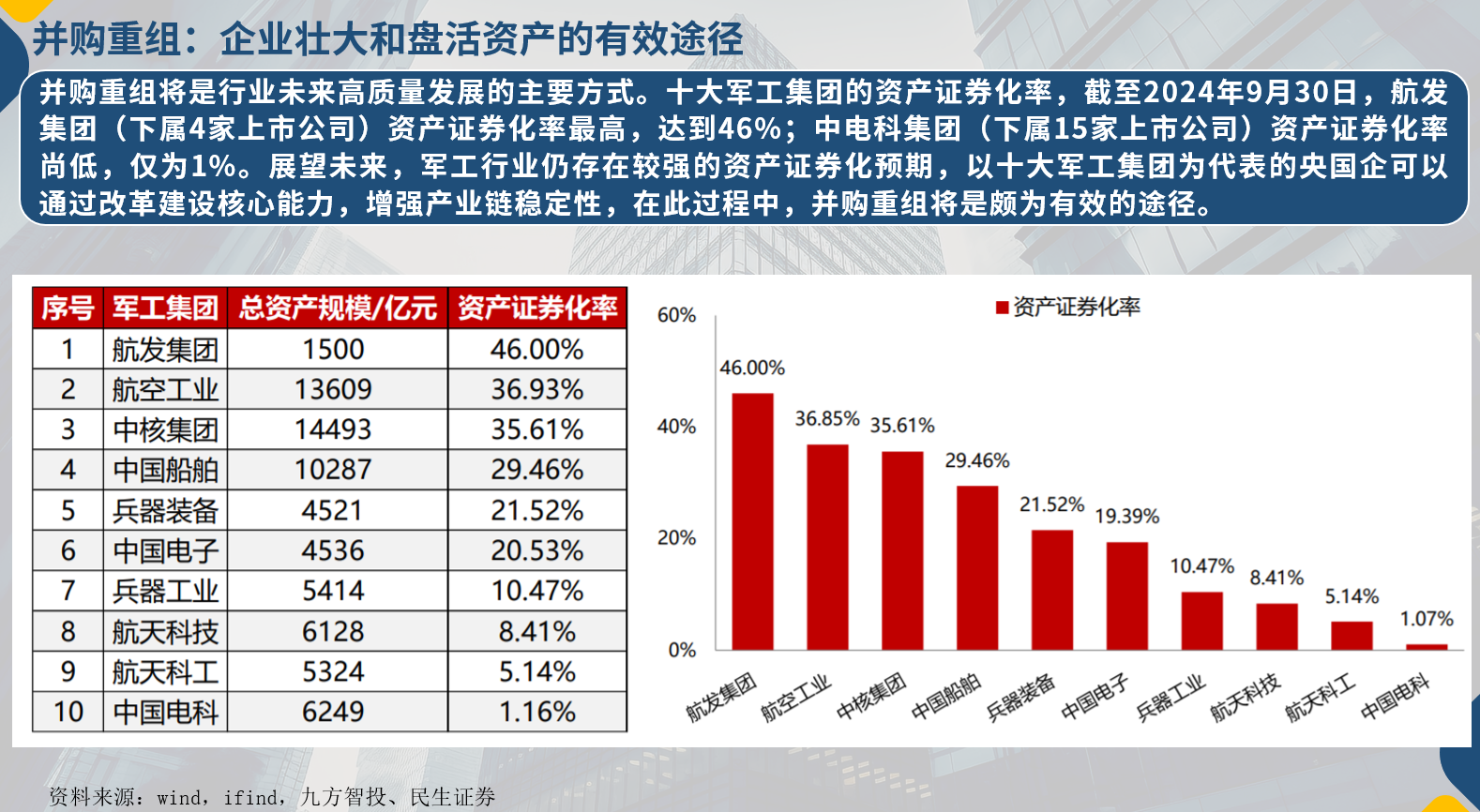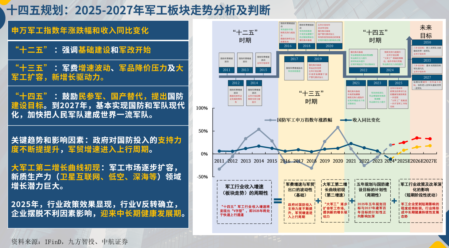 3)深化体制改革,优化产业生态。规划要求推进军工央企资产证券化与国企改革,通过科研院所改制、核心资产注入、市值管理等措施提升效率。2024年中央推动央企重组整合,军工板块成为改革重点,民参军企业收入占比增至25%,但需通过技术整合提升盈利能力。