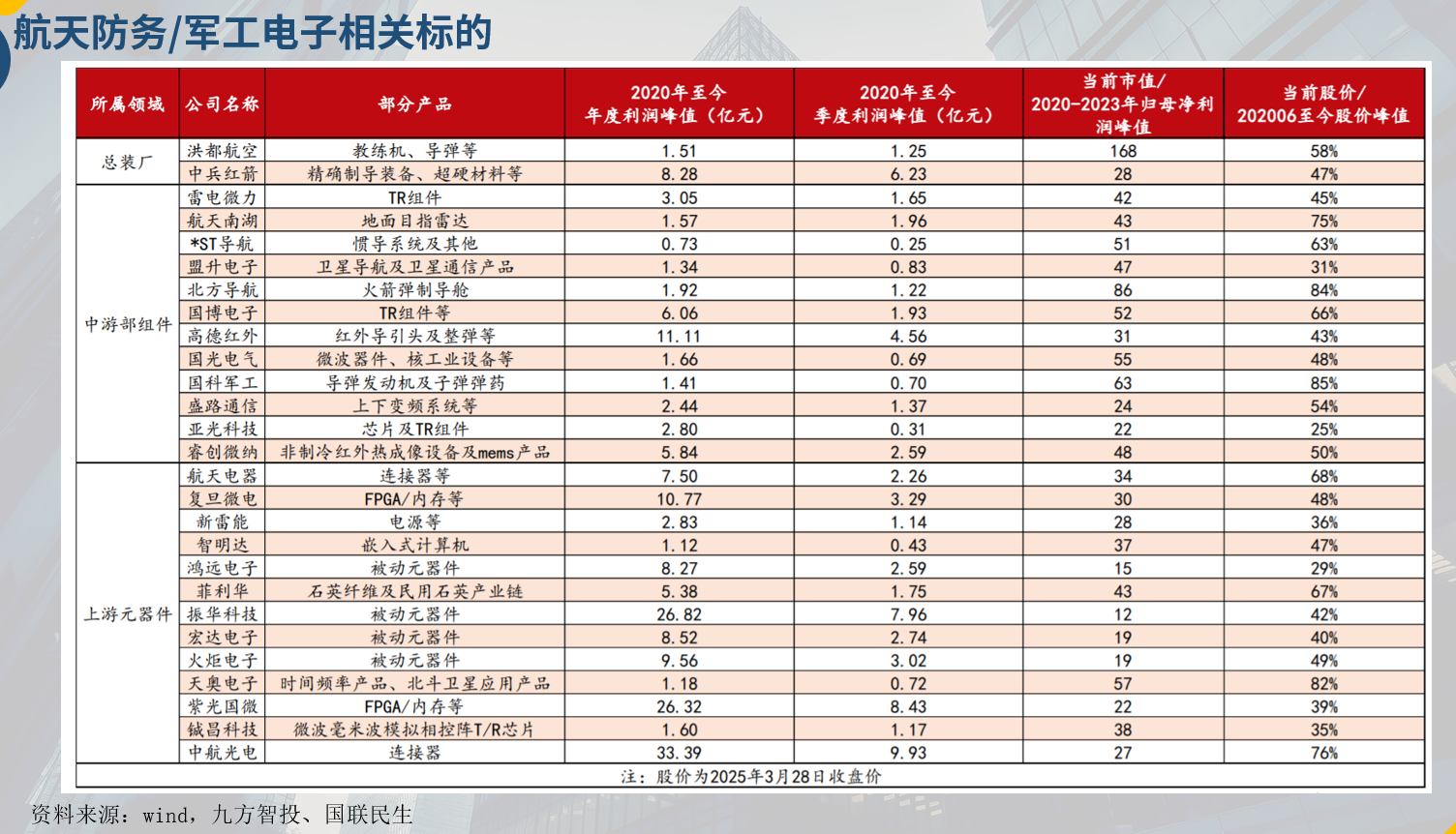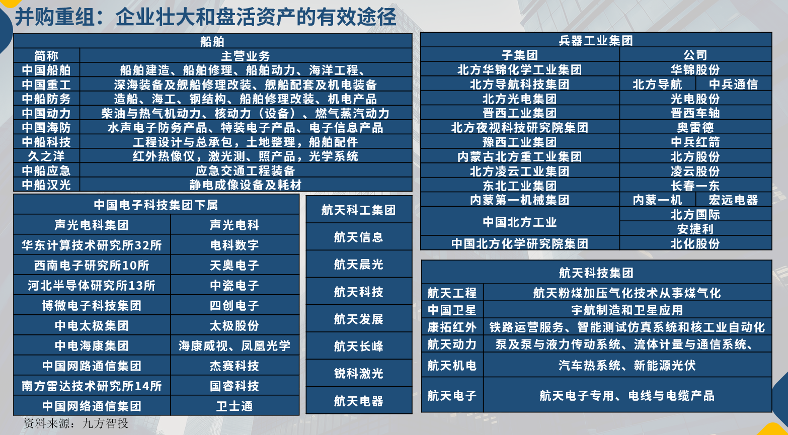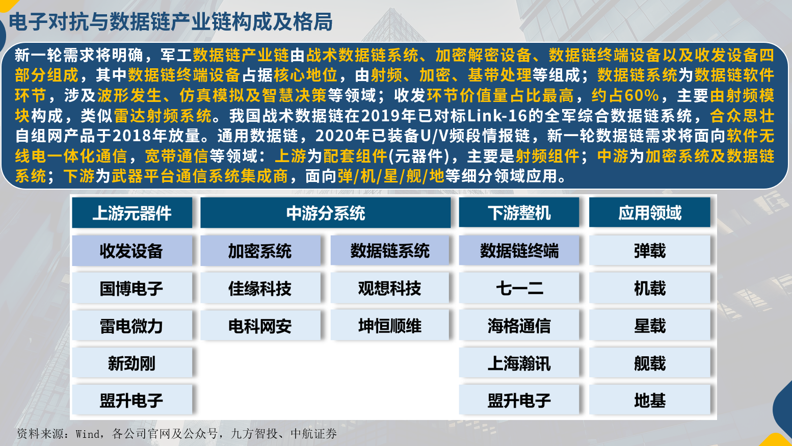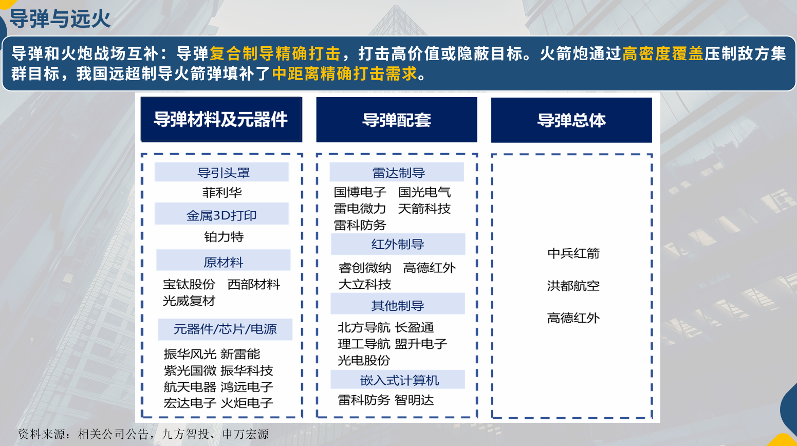 导弹与航天:航天科工(导弹制导系统),航天电子(卫星载荷)。