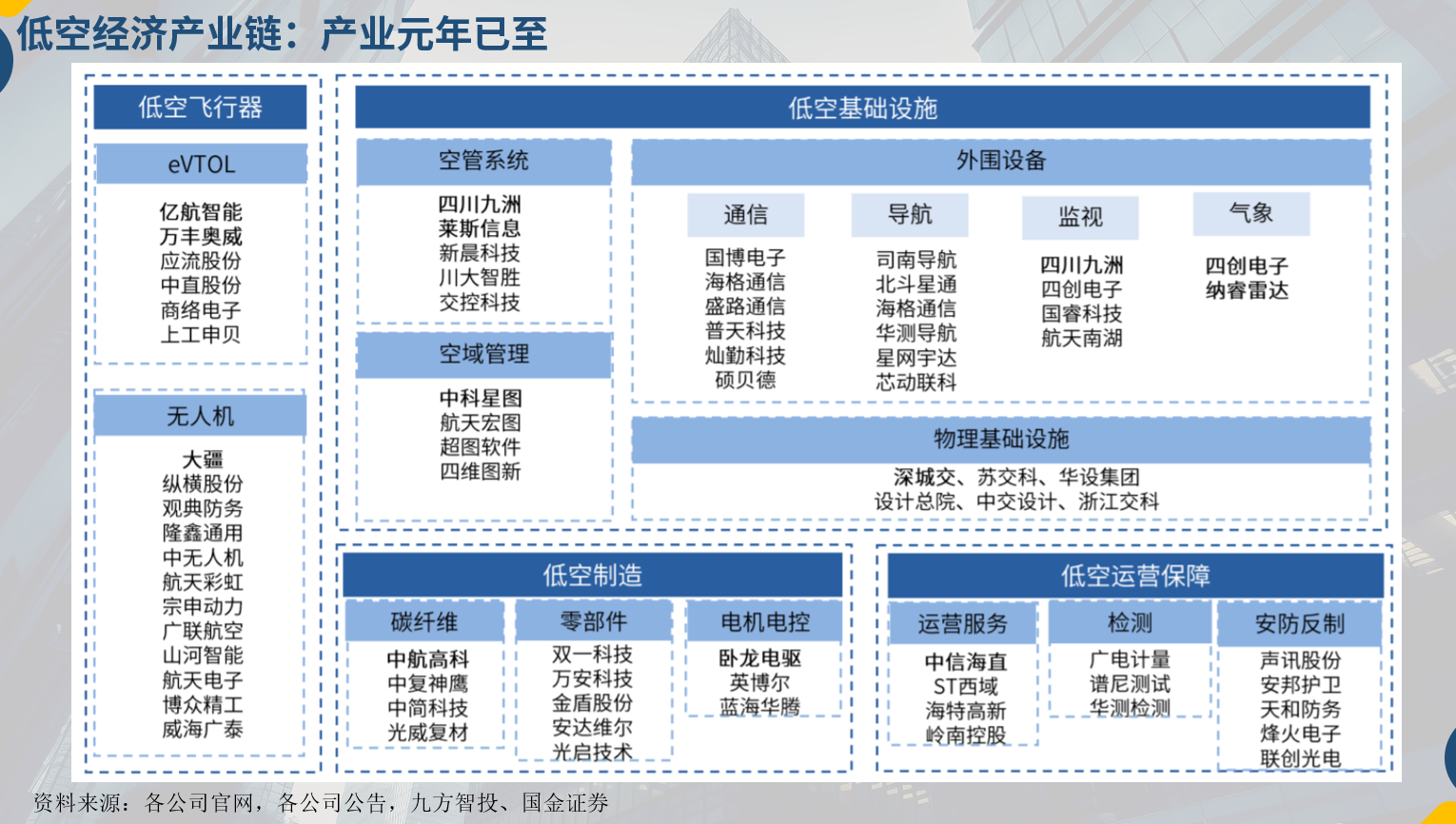 2)技术创新驱动,培育新质战斗力。规划强调军事智能化、信息化与装备体系化,推动AI、卫星互联网、无人系统等前沿技术与军工深度融合。新质生产力(如高端芯片、数据链、仿真技术)成为核心驱动力,助力构建“低成本、可持续”的作战体系,提升战场效能。同时,低空经济、商业航天等新兴领域被纳入国家战略,形成万亿级增量市场。