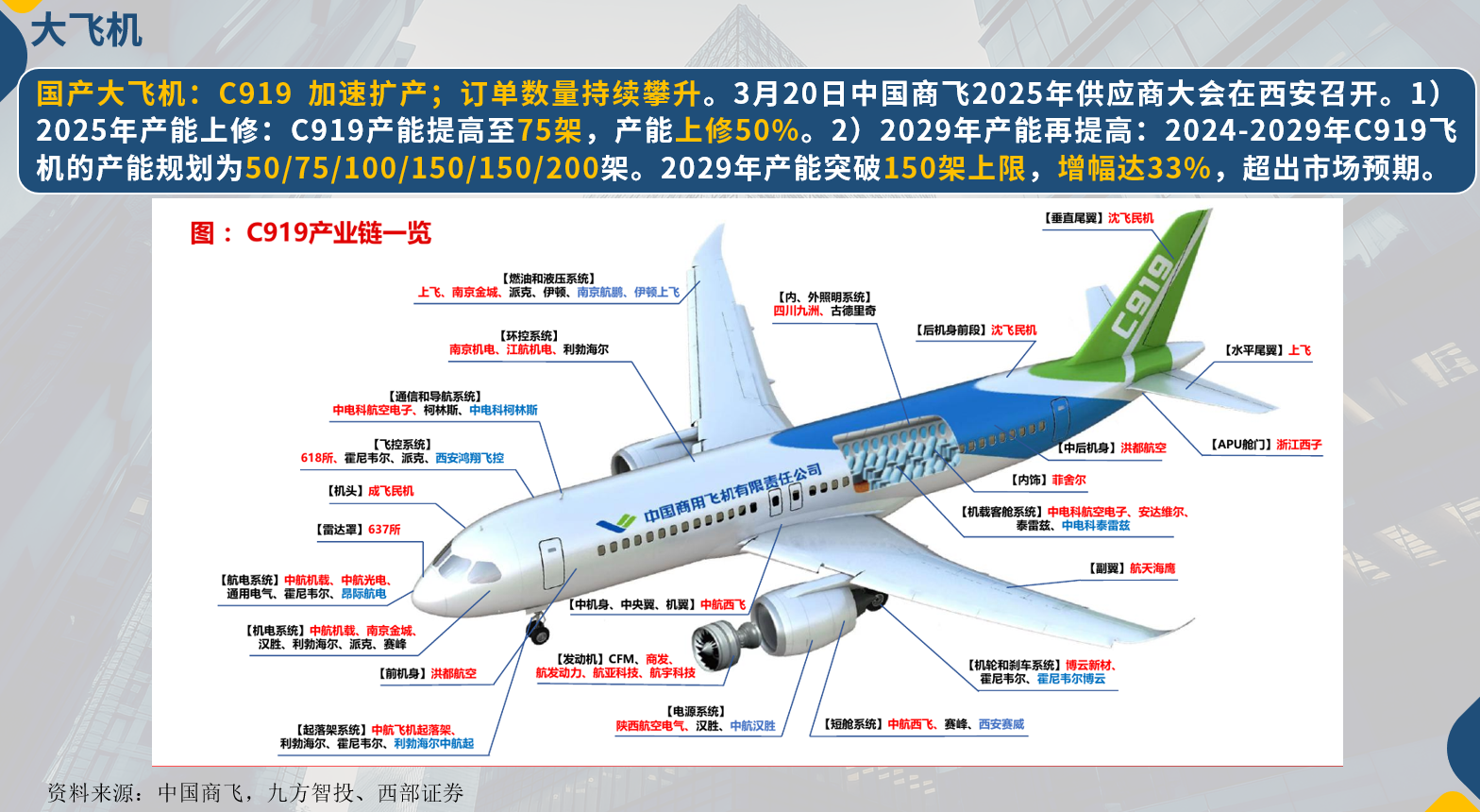 航空:中航沈飞(歼-20/歼-35总装),中航西飞(运-20/C919机体)。
