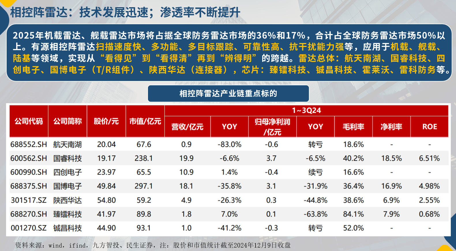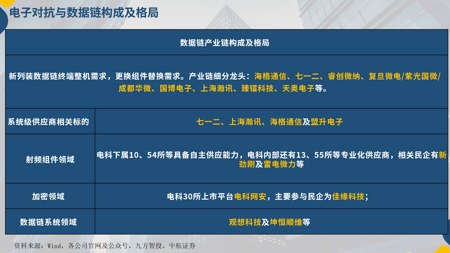 中国电科(雷达、数据链),海康威视(军用光电设备);