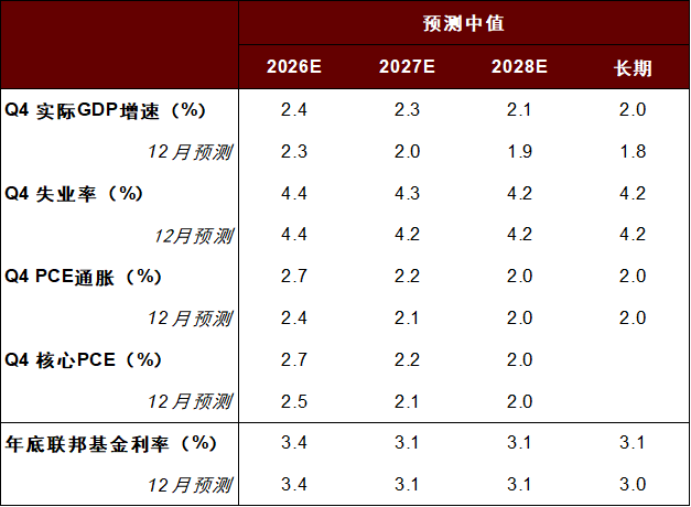 图表1:美联储对经济指标的预测(2026-03)