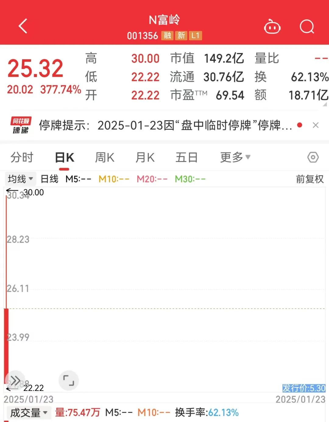 N富岭今日上市,开盘价22.22元,上涨超300%。