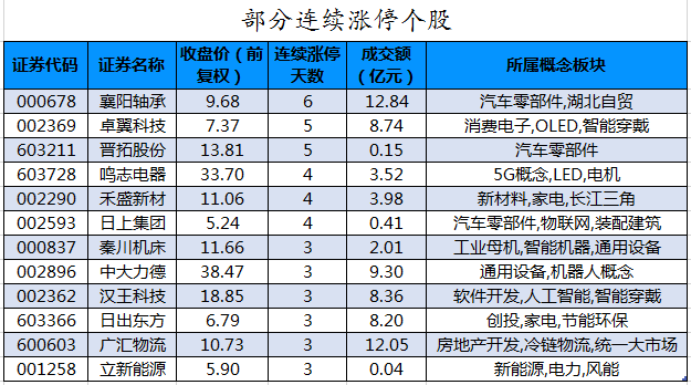 涨停股中,从收盘涨停板封单量来看,立新能源最受追捧,收盘涨停板封单有11159.28万股;其次是金晶科技、首航高科,涨停板封单分别有6389.72万股、4744.02万股。以封单金额计算,立新能源、晋拓股份、金晶科技等涨停板封单资金较多,分别有6.58亿元、5.34亿元、5.2亿元。