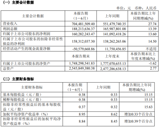 上半年公司营收7.0亿元,同比增长27.7%;归母净利润1.6亿元,同比增长13.6%;其中单二季度营收4.2亿元,同环比分别为增长30.9%、47.0%;归母净利润0.9亿元,同环比分别为增长19%、35%,环比继续高增。