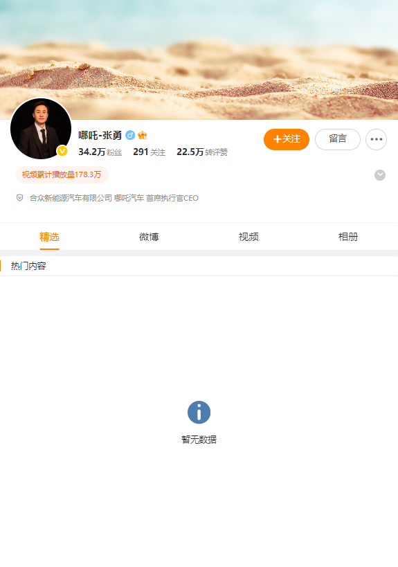 原哪吒汽车CEO张勇将其微博账号内容全部隐藏。