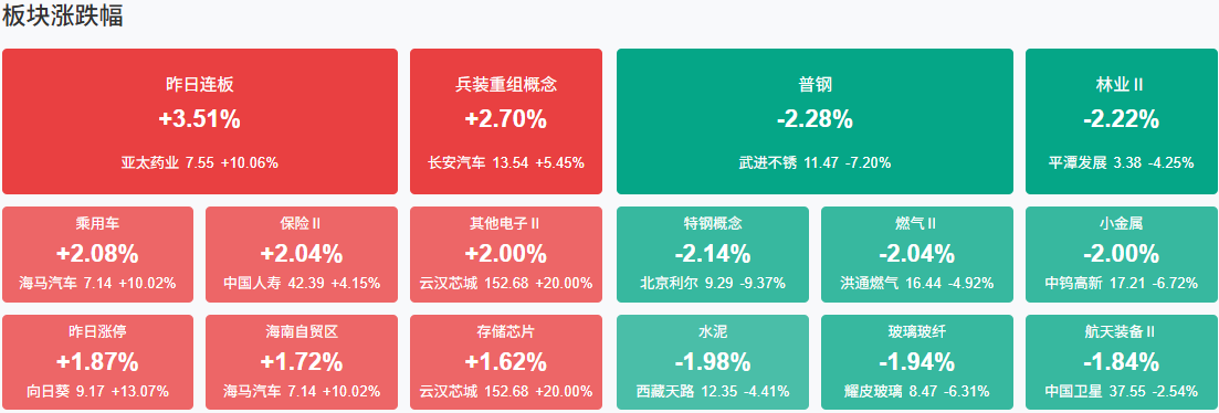 板块方面,保险、存储芯片、港口航运等板块涨幅居前,燃气、风电等板块跌幅居前。截至收盘,沪指涨0.1%,深成指涨0.15%,创业板指涨0.69%。