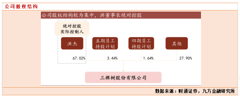 公司股权结构明晰,大股东绝对控股 67.02%。作为公司创始人,董事长洪杰自公司上市以来持股比例不低于 60%,为公司实际控制人。第五期及第四期员工持股计划分别占比 3.44%、1.64%。集中的股权结构有助于推动公司高管与股东的利益趋同,从而降低代理成本,优化公司治理结构。