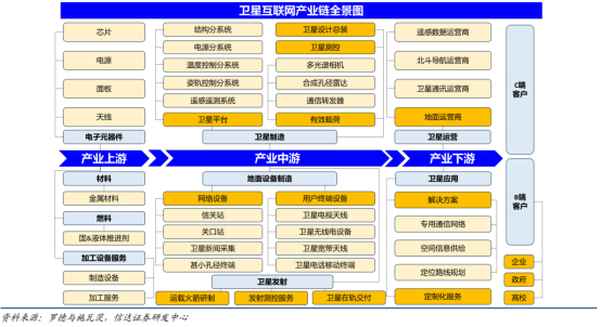 根据赛迪顾问物联网产业研究中心《“新基建”之中国卫星互联网产业发展研究白皮书》,卫星互联网产业链主要包含卫星制造、卫星发射、地面设备、卫星运营及服务四大环节。卫星制造环节主要包括卫星平台和卫星载荷。