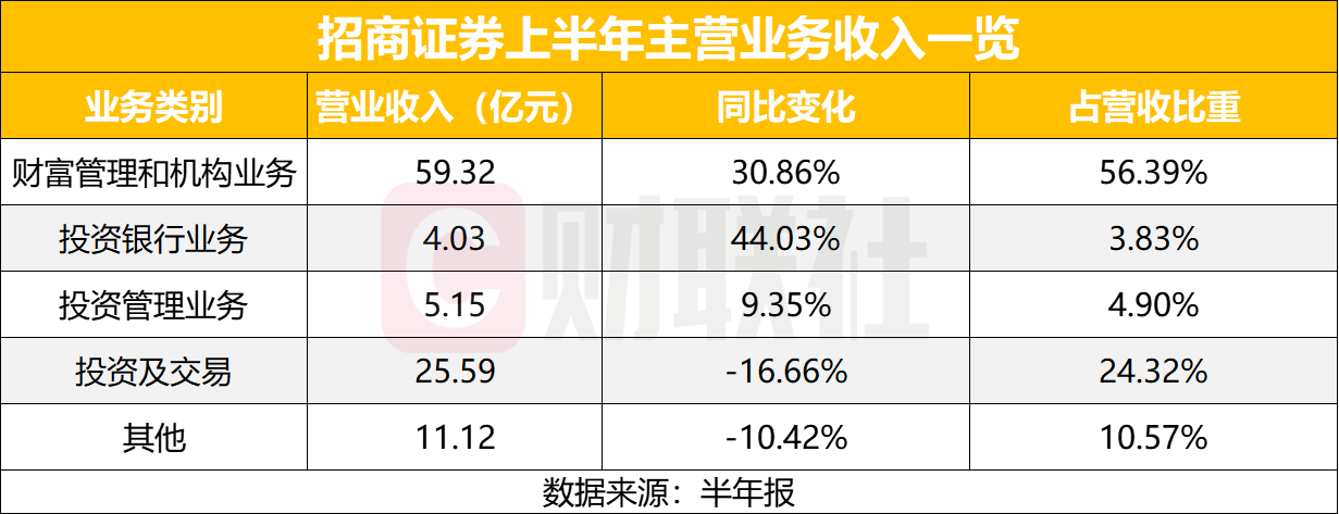 招商证券半年净利52亿 财富和机构业务贡献近六成收入 保持稳定器作用