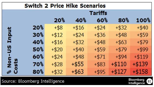 奈杜称,根据BI的基本假设情景,任天堂Switch 2价格上涨30%的前提是美国对其进口商品征收80%至90%的关税。"不过,任天堂可能会暂缓涨价,因为它可以利用90天的关税宽限期进一步增加美国库存。"