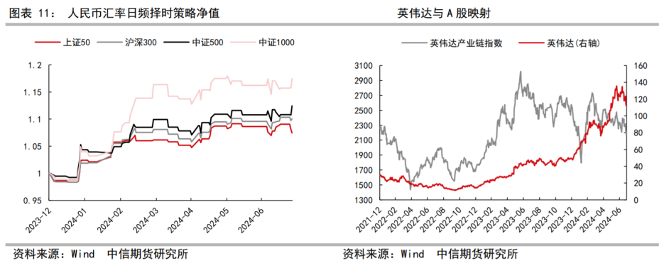 显示人民币汇率升值时,中证1000指数反弹概率更高。