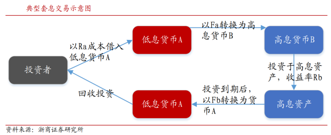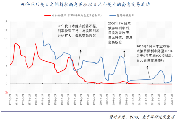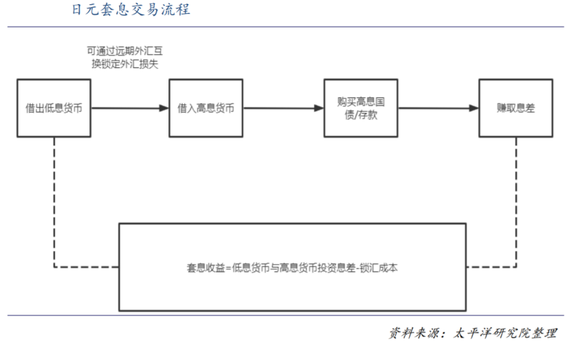 90年代后日本持续的低利率使得日元成为国际套息交易的首选借出货币。套息交易指的是将低息货币换成高息货币,再扣除外汇锁定成本后取得比持有低息货币更高收益的交易。90年代后日本的持续低利率与美国、澳洲等国家形成持续高息差,同时日本作为金融资本开放、经济实力出口贸易强劲的发达经济体,日元在全球金融市场有着较高的流动性。低利率和高流动性共同奠定了日元成为国际套息交易中的首选。