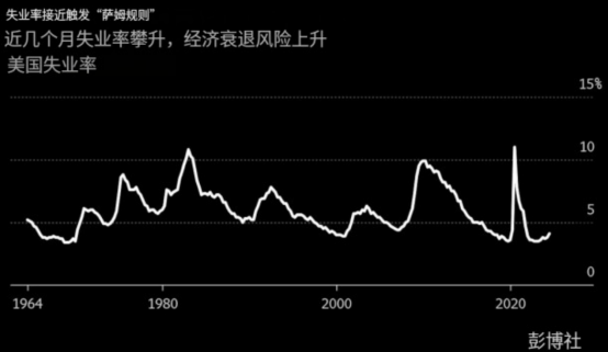 美国一些列经济走弱并触发萨姆规则。萨姆规则是美联储(Fed)经济学家克劳迪娅-萨姆提出的,规则是:当美国失业率三个月移动平均值减去前一年失业率低点后,所得数值超过0.5%,标志着美国已进入经济衰退的早期阶段。1950年以来的11次经济衰退中,萨姆规则全部得到印证。4月、5月和6月,失业率为3.9%、4.0%和4.1%,而去年1月和4月仅为3.4%,已经非常接近触发萨姆规则。上周五公布的失业率进一步攀升至4.3%。