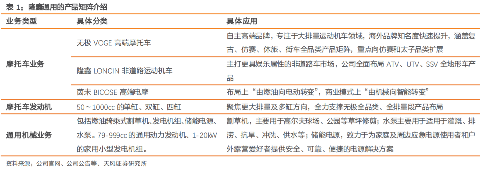 在摩托车发动机领域,隆鑫通用已发展形成三大产品矩阵,涵盖多种车型和排量段,并拥有超70款发动机产品。其中,公司首款四缸发动机KEN660的推出,标志着隆鑫通用跻身拥有四缸发动机的国产品牌之列。