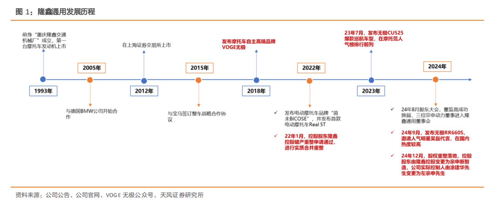 2003年跨界扩张,后陷入债务危机,2021年破产重整。2024年,宗申动力通过收购隆鑫通用24.55%股权实现控股,整合优质资产。