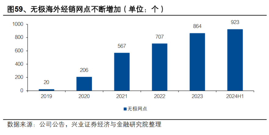 ③LONCIN全地形车。2022年公司全面布局ATV、UTV、SSV全地形车产品。23H1重磅产品ATV700在欧盟、俄罗斯、土耳其、美国等市场全面推广,XWOLF系列实现200-1000cc排量的全覆盖。24H1全地形车销售收入1.9亿元(同比+71%),占营收2%。目前主要市场(欧洲及中南美洲)已经完成ATV全排量段产品布局,接下来公司将继续拓展UTV及SSV品类,并逐渐开拓北美等市场。